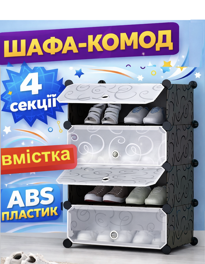 - ✔️ 4 окремі секції — зручно зберігати різні пари взуття